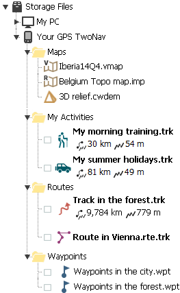 •Dossier par défaut de vos activités : ‘TwoNavData/Data/Tracklog’