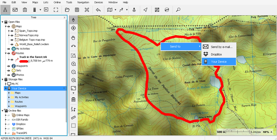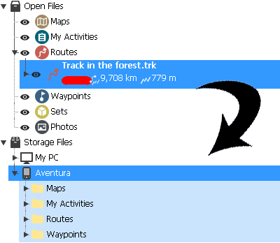 Une fois que votre appareil a été détecté par Land, vous pouvez commencer à transférer des fichiers (cartes/activités/waypoints/itinéraires/traces/routes/...). Pour transférer un fichier de Land vers votre appareil, ou vice versa, suivez l'une de ces méthodes :