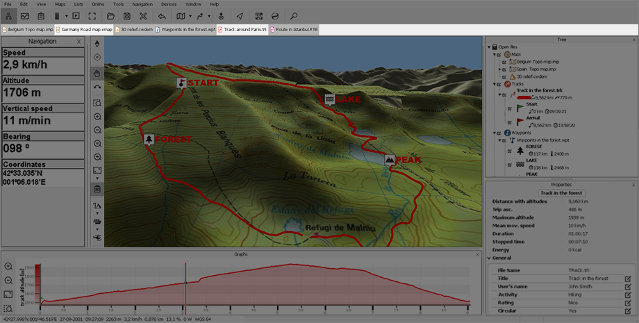 Cette barre permet d’ajouter des raccourcis pour les éléments les plus utilisés (cartes/waypoints/routes/traces/ensembles...). Ces éléments sont également accessibles depuis l’arborescence des données.