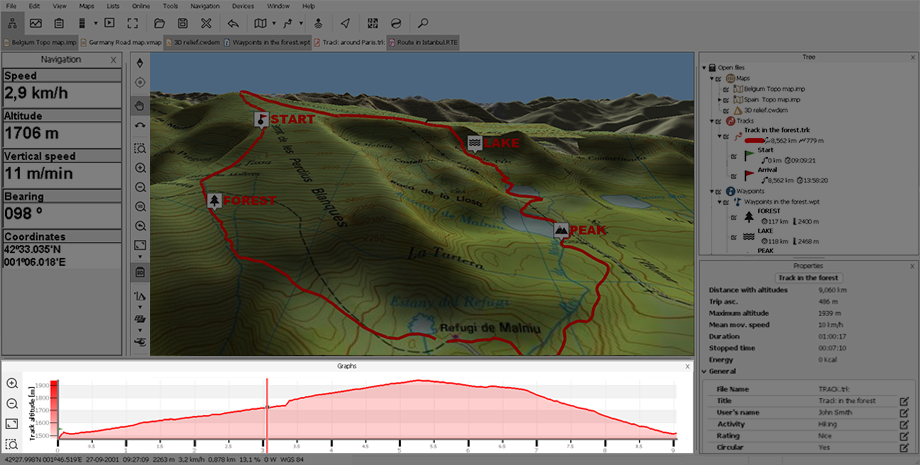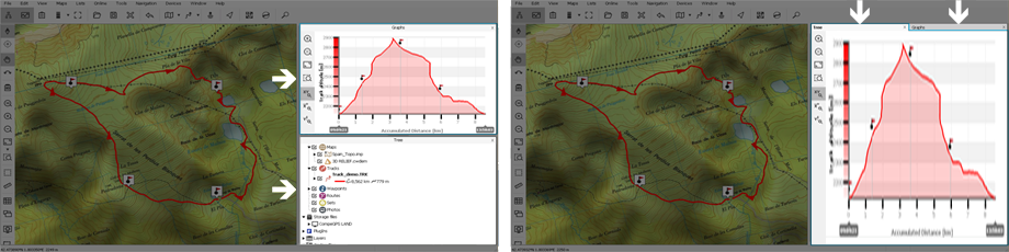 Grâce aux graphiques, il est possible de travailler de façon plus détaillée sur certaines portions de routes/traces et d’analyser des données ainsi que des statistiques de manière plus précise.