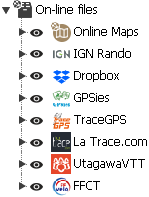 ‘Fichiers en ligne’ vous donne également accès à des services personnels de stockage en ligne (Dropbox...), qui nécessitent une identification et vous permettront d'accéder à des cartes qui ont précédemment été enregistrées sur ces serveurs.