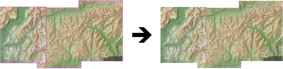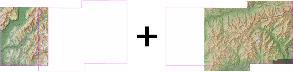 Cette fonction permet de fusionner plusieurs cartes en une seule. Land effectue automatiquement l’équivalence des échelles et la projection pour la carte qui vient d’être créée. Il est ainsi inutile de calibrer la carte obtenue.