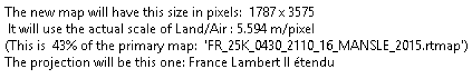 4. Des informations sur la carte créée s’affichent à l’écran avant la fusion des cartes (taille de la carte, échelle et projection).
