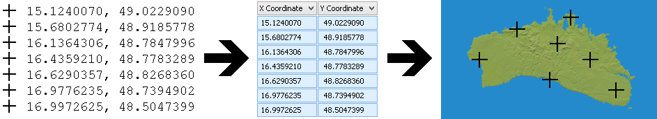 4. Une fois séparé, le type de données auquel fait référence chaque colonne doit être attribué (dans l’exemple ci-dessous, la première colonne représente les coordonnées X, tandis que la deuxième colonne représente les coordonnées Y). Si aucun concept n’est attribué à chaque colonne, Land ne peut pas importer la trace.