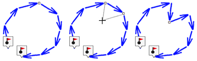 2. Sélectionner le waypoint après lequel une succession de waypoints doit être supprimée et cliquer sur ‘Supprimer points’ dans l’éditeur vectoriel.