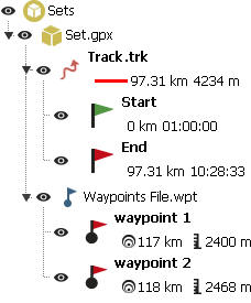3. Ouvrir tous les objets à stocker dans l’ensemble (carte/waypoints/route/trace).