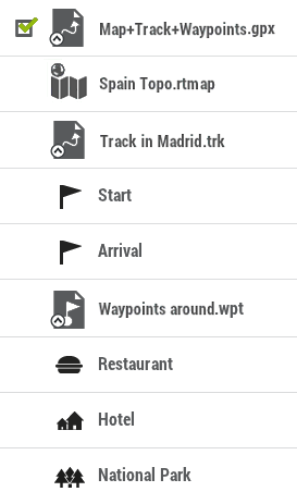 Les ensembles sont un outil très utile lorsque l’on a l’habitude d’ouvrir les mêmes waypoints/routes/traces/cartes. Ils sont utilisés pour éviter d’avoir à ouvrir les fichiers un par un.