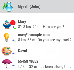 •Navigation jusqu’à la position des amis : sélectionner le contact à rejoindre et choisir l’option 'Naviguer' dans le menu contextuel.