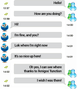 'Amigos' (‘Menu principal > Online > Amigos’) est un système de localisation développé par Land qui permet d'autoriser certains contacts à visualiser la position actuelle des autres contacts sur la carte.