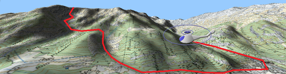 Land dispose d’un mode simulateur tridimensionnel qui peut s’avérer très utile pour découvrir ou préparer le terrain sur lequel les activités vont être réalisées, se déplacer librement dans le paysage comme si l’on s’y trouvait. Les commandes disponibles lorsque le ‘Simulateur de vol’ est activé sont les suivantes :