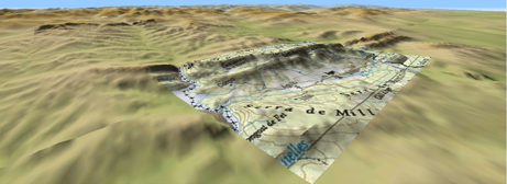 •Affichage du relief sur la vue 3D même lorsqu’une carte raster est chargée : si la vue 3D est activée, la carte relief s’affiche avec le reste des cartes raster.