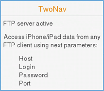 2. Start TwoNav and activate ‘FTP Wifi’ function: ‘Main menu > Settings > Full settings > Communications > FTP Wifi’.