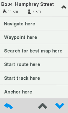 La posición seleccionada se marcará, y se abrirá una ventana superior mostrando información relativa a ese punto (nombre del lugar/coordenadas, rumbo y distancia respecto ese punto, altitud del punto seleccionado...).