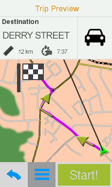 Przed rozpoczęciem nawigacji, TwoNav wyświetli ci 'Podgląd trasy’. To etap, w którym możliwe jest sprawdzenie podstawowych informacji o planowanej podróży (cel, całkowity dystans...) oraz ostrzeżeń alarmowych (Odchylenie od trasy, prędkość, nachylenia, wysokość...).