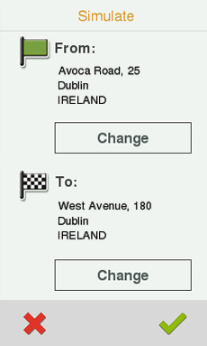 •A à B (tylko w nawigacja on-road): W ‘Menu główne > Przybliżenie na > Symuluj’, możesz wybrać dwa punkty (POI/adresy/ulubione/…), by zwizualizować proponowaną trasę podróży z punktu A do punktu B.