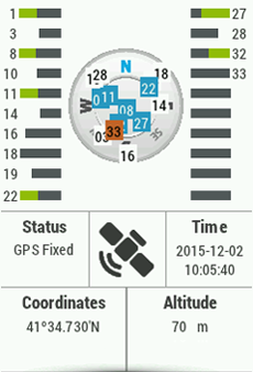 •GPS: Visualice el número de satélites disponibles, su distribución orbitando sobre la bóveda y la cobertura que alcanza cada uno de ellos. Por defecto, al iniciar TwoNav, la aplicación intentará conectarse a los satélites disponibles para que el usuario pueda empezar a utilizar la función GPS. Si el GPS está desconectado, TwoNav no recibirá ninguna señal de posición y muchas funciones de la aplicación dejarán de funcionar. Posibles estados de la función GPS: