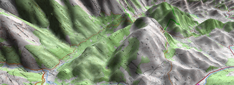 •Sombreado: El sombreado del relieve se visualizará de una forma más clara y atractiva al incorporar simulación de sombras y realzando así las variaciones del terreno. Ésta opción sólo puede visualizarse en 3D+.