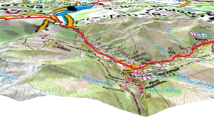 •Modo ‘3D+ relieve’: Orografía del terreno en 3D real (los mapas vectoriales no se visualizarán en 3D+). Este modo sólo podrá visualizarse si carga los siguientes mapas: