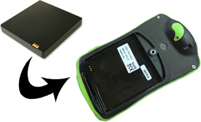 2. Ubique la batería de li-ion dentro del compartimento (incluida dentro de la caja del producto). Los 3 conectores metálicos de la batería deben estar en contacto permanente con los 3 pines de la batería.