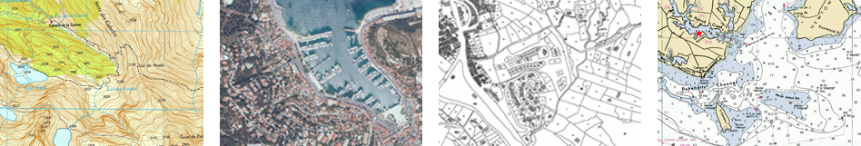 Ortofoto: Mapas basados en fotografías aéreas con información referente a todos los elementos incluidos en el paisaje (campos, lagos, caminos, edificios, parques nacionales...).