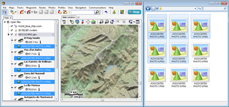 •Arrastre archivos desde el explorador de Windows/Mac: Mantenga pulsado el botón izquierdo del ratón sobre el archivo y arrástrelo hasta el waypoint a asociar.