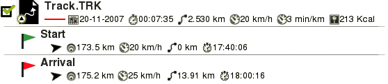 •Información en listas de waypoints/tracks: Muestre información adicional para los elementos listados en listas de datos. La información relacionada con estos archivos se presentará en una 2ª línea justo después del nombre del archivo. Defina los campos de datos que desee mostrar en esa 2ª línea.