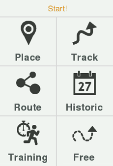 Seleccionar navegación al iniciar la grabación de 'Triplog': Al pulsar 'Triplog > ¡Empezar!', puede elegir el destino de su navegación entre varias opciones.