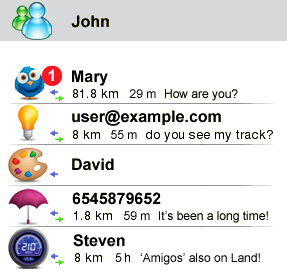 'Amigos' (‘Menu principal > Amigos’) est un système de localisation développé par CompeGPS, qui vous permet d'autoriser certains de vos contacts à visualiser votre position actuelle sur la carte.