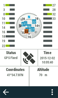 HINWEIS: TwoNav versucht, seine aktuelle Position festzustellen, aber wo dies aufgrund fehlenden GPS-Netzes nicht möglich ist (zum Beispiel in Gebäuden), wird der GPS-Status auf ‘Verbunden (ohne Position)’ gesetzt.