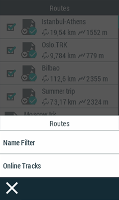 •Mit einem langen Drücken: Drücken Sie lange, etwa 3 Sekunden, auf ein Element, allgemein Listen von Tracks, Routen, Wegpunkte, Karten oder Datenfelder.