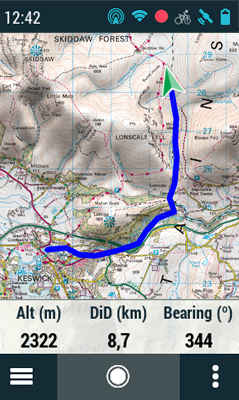 •Stop: Drücken Sie diesen Knopf, um Ihren aktuellen Weg zu beenden zu stoppen. Der Track Ihrer Route wird in dem Ordner ‘Tracklog’ gespeichert. Sie können Ihre aufgezeichneten Tracks direkt von der Trackliste aus überprüfen: (‘Menü > Meine Aktivitäten’).