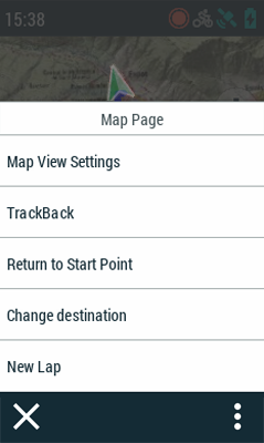 •Zurück zum Ausgangspunkt: Gehen Sie von der gegenwärtigen Position direkt zum Startpunkt des aktiven Tracks (gerade Linie zum Startpunkt).