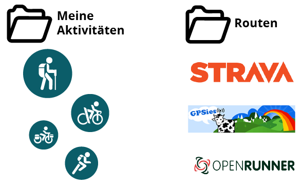 TwoNav unterscheidet bei den Strecken zwei Typen, je nach Nutzung: