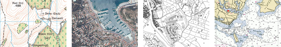 Mapas calibrados digitalmente basados en imágenes bitmap (si escala el mapa, notará pérdida de claridad, la calidad del mapa se degradará).