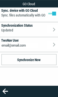 NOTA: Fuerce una sincronización instantánea pulsando ‘Menú principal > Configuración > Nube GO > Sincronizar ahora’. A continuación, su dispositivo se sincronizará automáticamente con la nube GO.