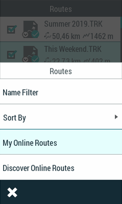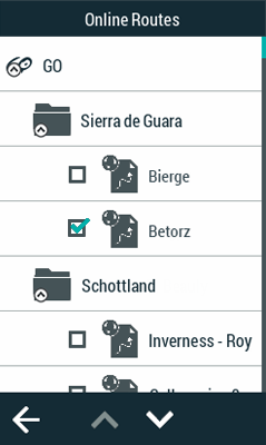 1.   Pulse ‘Menú Principal > Rutas > Más opciones > Mis rutas on-line’.