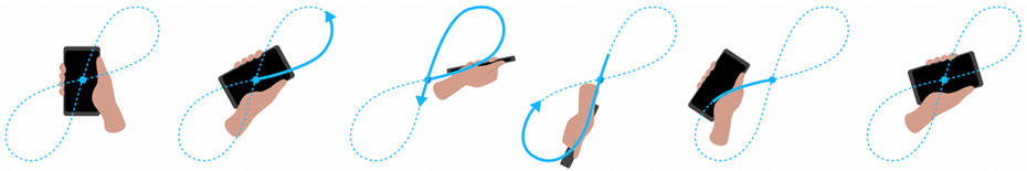 • Mouvement en forme de 8 : il ne s’agit pas de dessiner un 8 à plat, mais d’effectuer un mouvement de rotation pour capter des relevés dans les 3 axes.