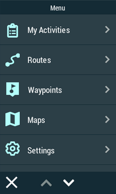 La maggior parte delle opzioni del software possono essere inserite dal menù principale di TwoNav. Premere sugli elementi del menù per attivarli.