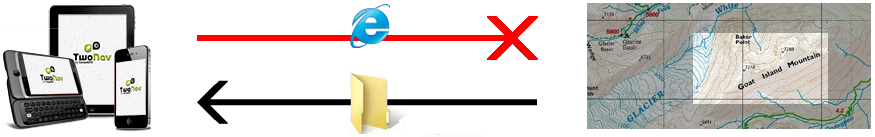 When an on-line map is opened, downloaded map sections will be kept locally in the device in a temporal folder (cache memory). By doing this you will be able to use that remote map without internet connection. TwoNav application will keep the map area that you have selected in the device memory.